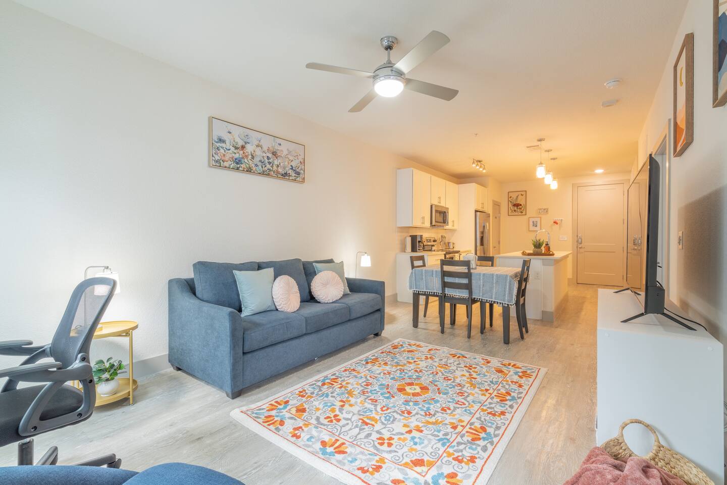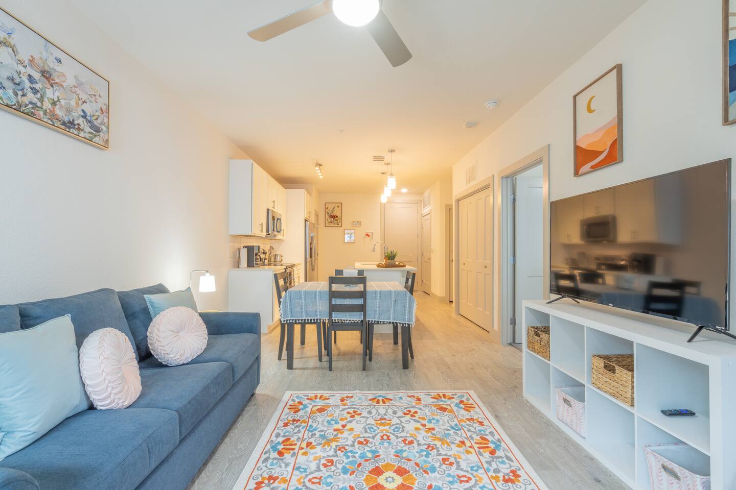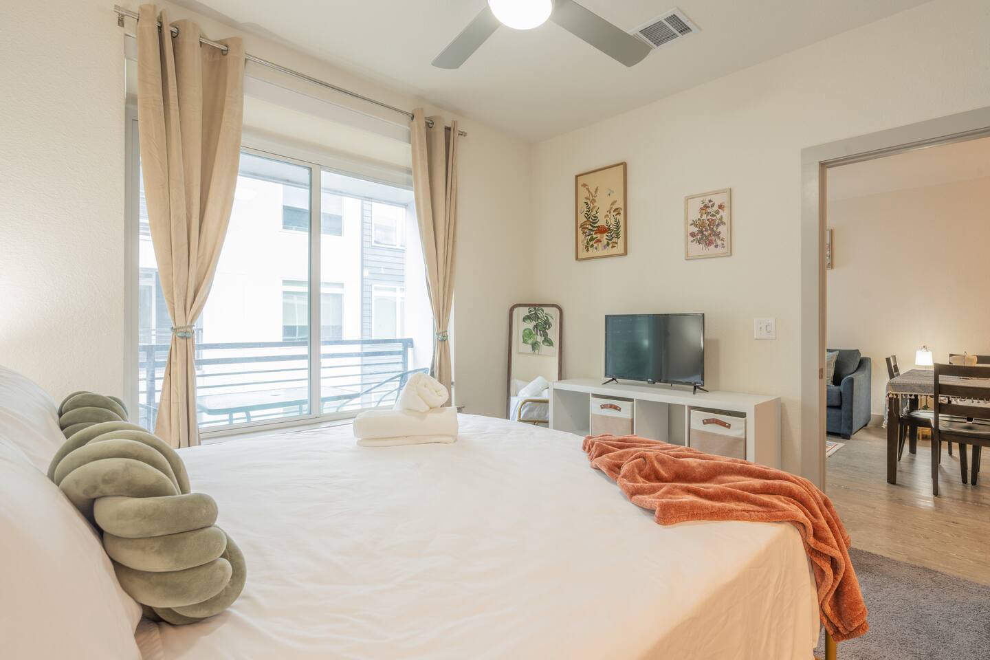 Escape to a Serene Downtown Retreat Welcome to your stylish haven on the San Antonio River, perfectly situated in the heart of River North. This modern apartment offers breathtaking views of a serene courtyard, blending tranquility with city living. Inside, you'll find: A fully stocked kitchen King-sized bed, plus a pull-out couch High-speed internet & a dedicated desk area 55-inch smart TV in the living area & 32-inch TV in the bedroom Convenient in-unit washer & dryer Book your stay today!