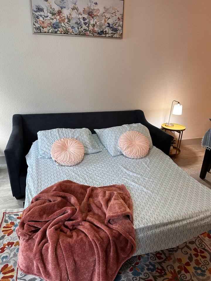 My family and I enjoyed our stay so much we came down for a little mini vacation and found the Airbnb super easy. I really like that there was parking right out front for drop off (It did have a one hour limit), which gave us ample time to unload our bags from the car and get in the building and go upstairs to get the parking pass. The parking garage was very convenient right around the corner easy to walk to! We felt very safe with there being a code to get into the building so it wasn’t open to the public. It was a little far of a walk to the Alamo or restaurants that were on the Riverwalk, but I would suggest looking into the Riverwalk shuttle. It can pick you up not to far from the apartment which was again so convenient. I do think the next time we come back to San Antonio for a trip we will definitely be booking here again.
